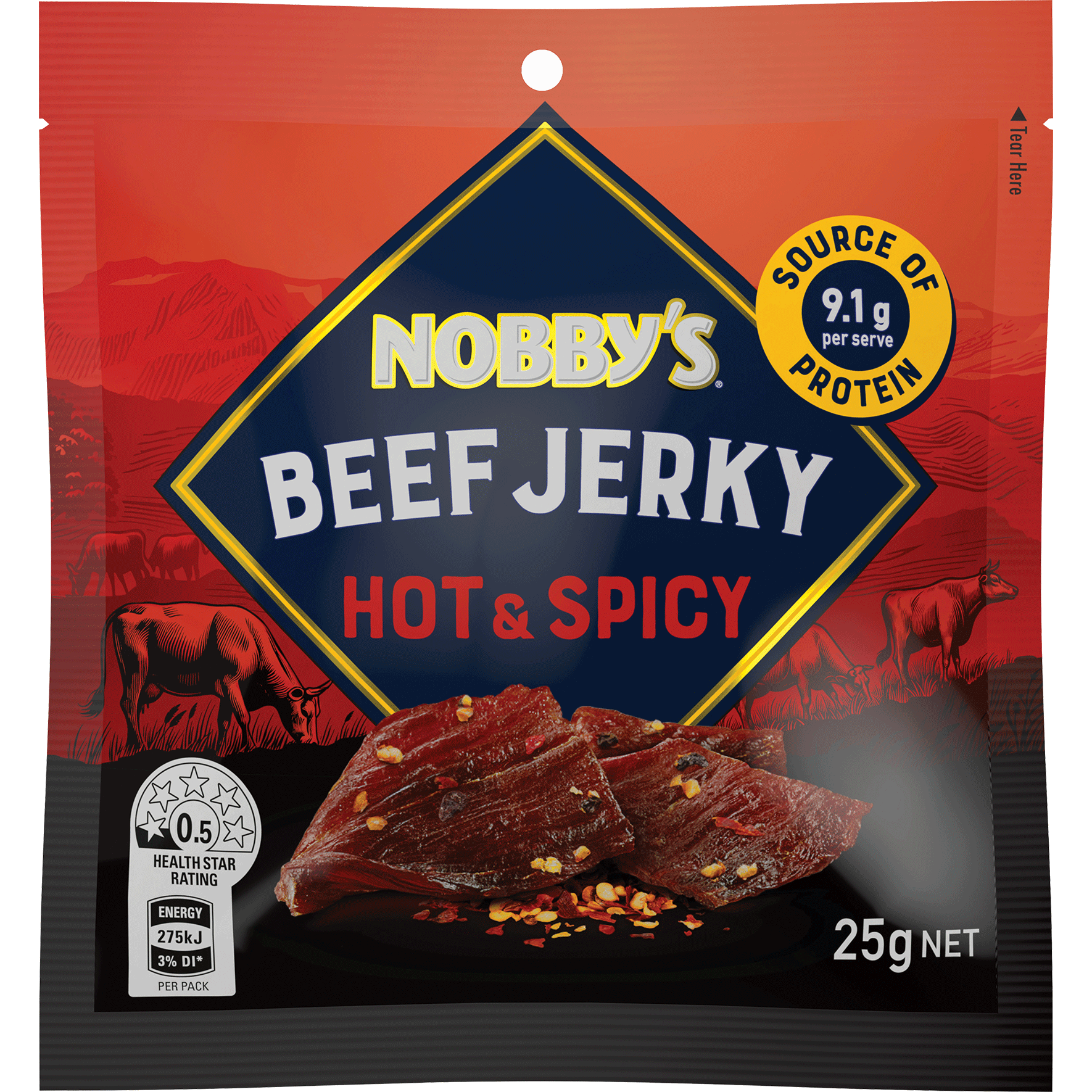 Nobbys Beef Jerky Hot & Spicy 25g
