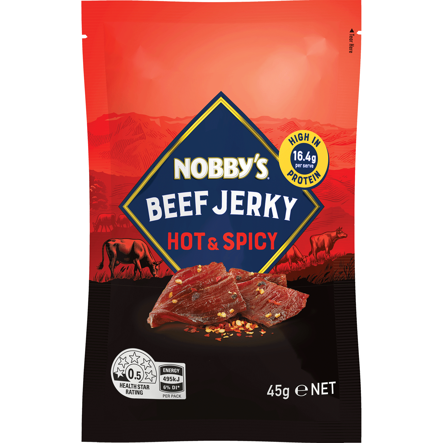 Nobby's Beef Jerky Hot & Spicy 45g
