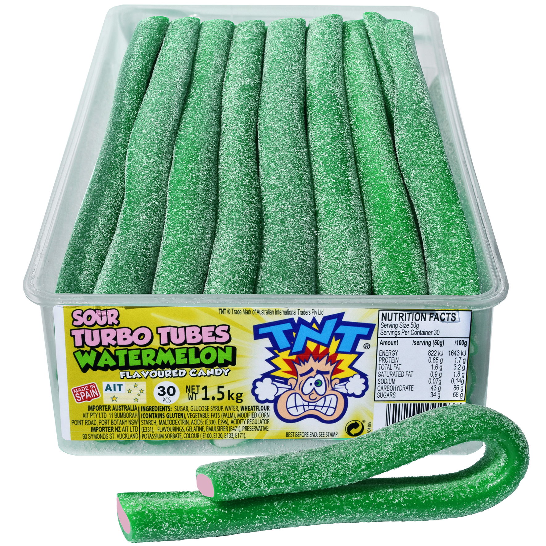 TNT Sour Turbo Tubes Watermelon - 6 x (30 x 50g)